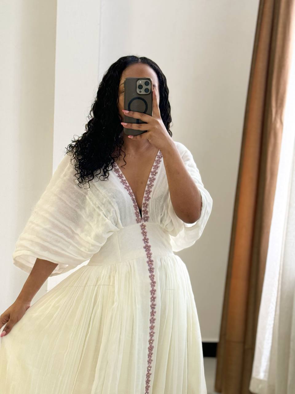 Premium Menen Fabric: Handcrafted from high-quality, hand-spun Menen cotton, providing a lightweight and breathable feel that drapes beautifully for all-day comfort.