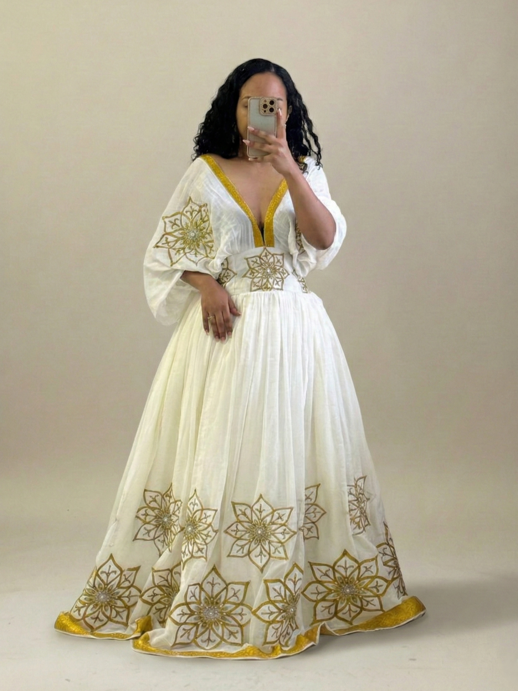 Embrace a new beginning with the Misrak Gown. Named after the Amharic word for “East” or “Sunrise,” this breathtaking Habesha Kemis is a masterpiece of Ethiopian craftsmanship, designed for the woman who carries the light of a new day in every step.